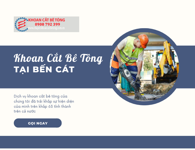 Khoan cắt bê tông tại thị xã Bến Cát là đơn vị chuyên cung cấp dịch vụ khoan cắt bê tông uy tín, chuyên nghiệp. Với đội ngũ công nhân, kỹ thuật viên có kinh nghiệm lâu năm trong nghề và có trách nhiệm cao với công việc. Công ty Chuyên khoan cắt bê tông tại bến cát giá rẻ, uy tín sẵn sàng phục vụ quý khách 24/7.